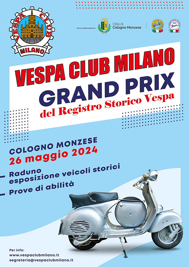 per celebrare il 75° compleanno del Vespa Club Milano siete tutti calorosamente invitati a partecipare al Grand Prix del Registro Storico