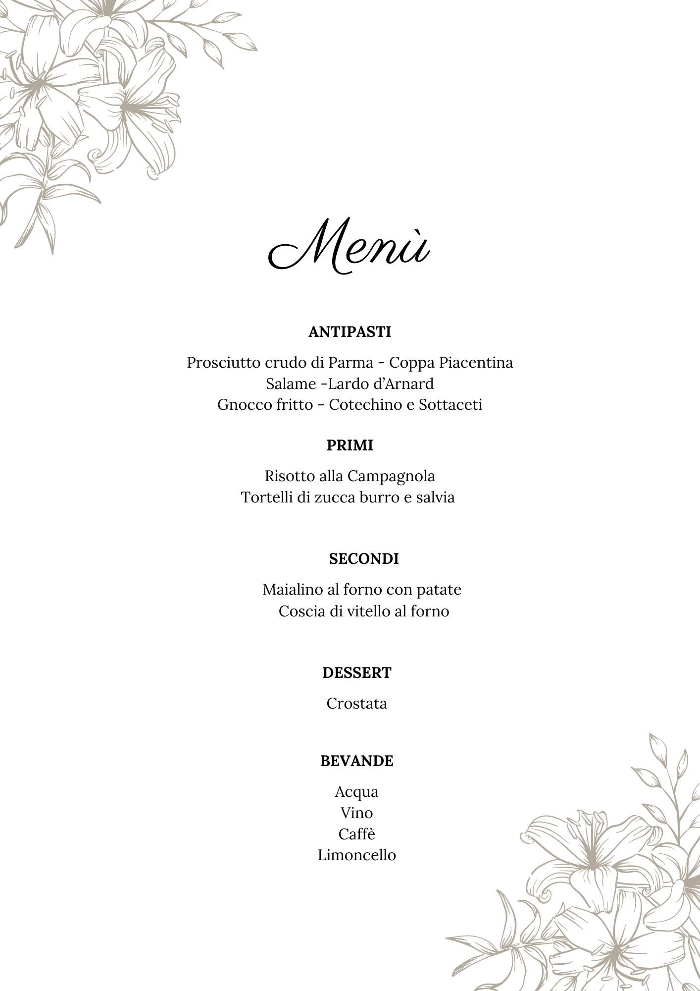 In allegato trovate il menù, il costo a persona sarà di € 40,00.